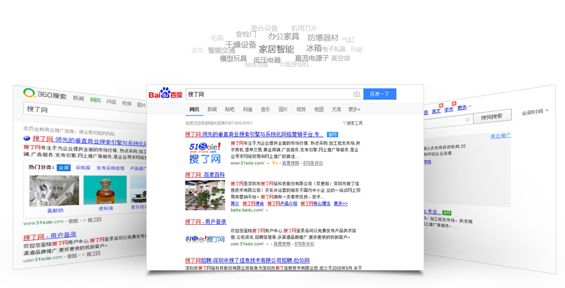 百度、360、搜狗搜索引擎左側位置展示