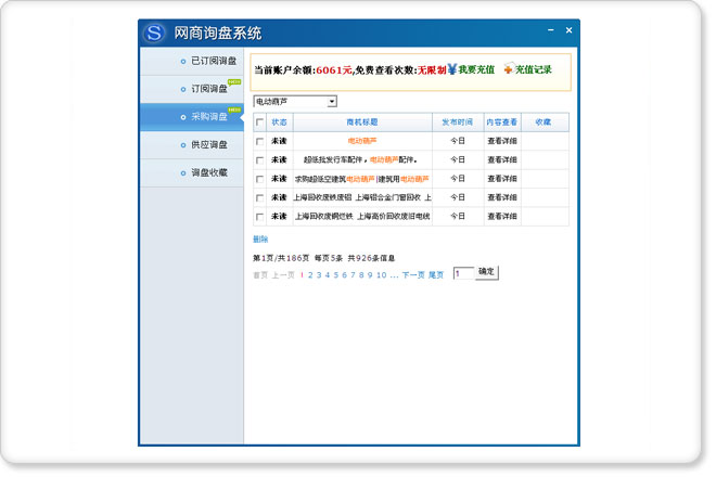 • 提示網絡上各種在線的供求信息,以便更好的更方便的找到客戶。